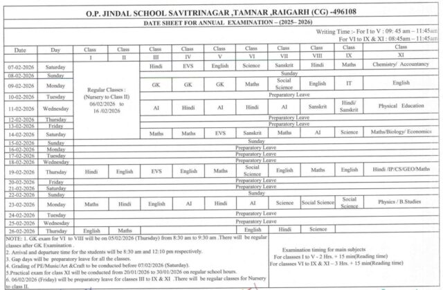 CBSE Affiliation No. 3330096, Under the Aegis of Jindal Power Limited, Tamnar